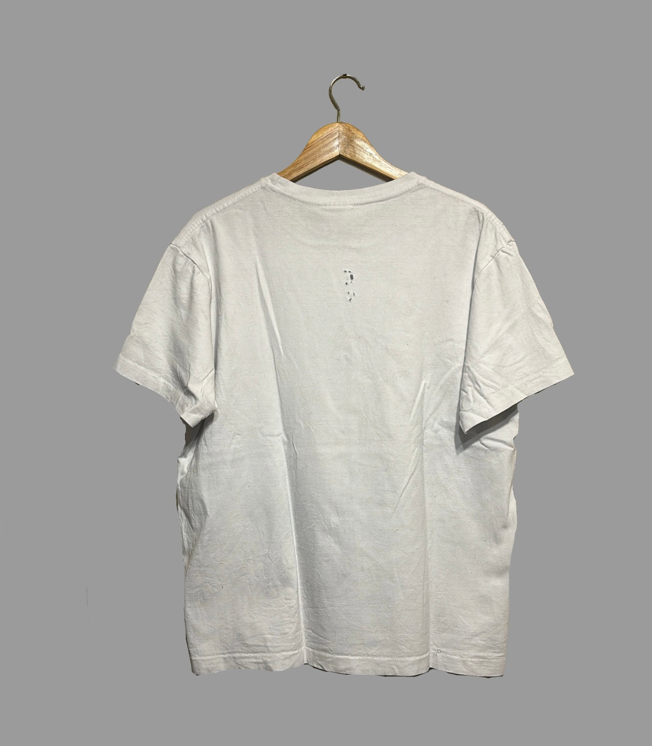 Real small stains throughout the front (I’m lazy, so I haven’t tried to oxy them out), and small holes on the back